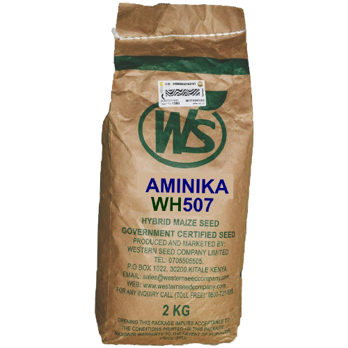 The variety stands out for its large, clean semi-flint kernels, strong green stems, and multipurpose value. Beyond grain production, Aminika WH507 provides quality cattle fodder from its robust stalks and is well suited for roasting, making it attractive for both household use and market sales. For farmers seeking certified maize seeds in Kenya with high yield potential and versatility, Aminika WH507 is a reliable option.