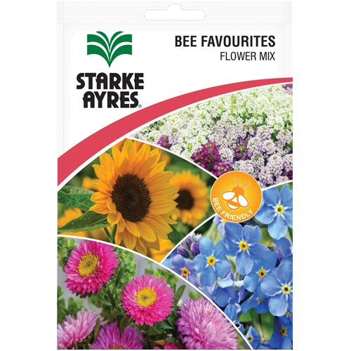 Bee Favourites Flower Mix is a vibrant blend of flowering plants designed to attract bees and other beneficial pollinators to your garden. The mix includes Alyssum, Aster Powder Puffs, Sunflower, and Forget Me Not, providing varied colours, shapes, and flowering periods.
